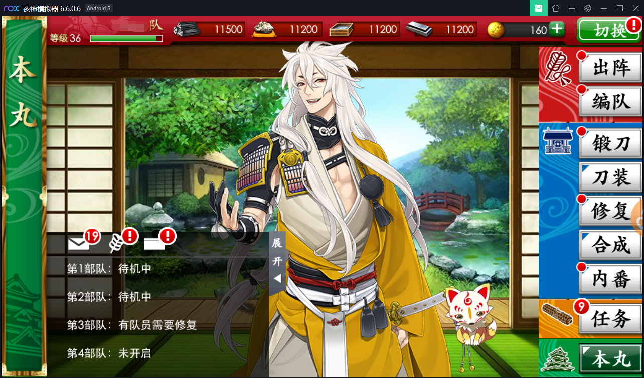 安装模拟器并下载游戏后,登录游戏到本丸。