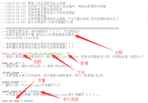 **函数:**可使用lua函数以及KCA的公开API,用来执行各种操作,比如Base.Click(20,20)就是在游戏画面的x=20,y=20的位置进行一次点击。